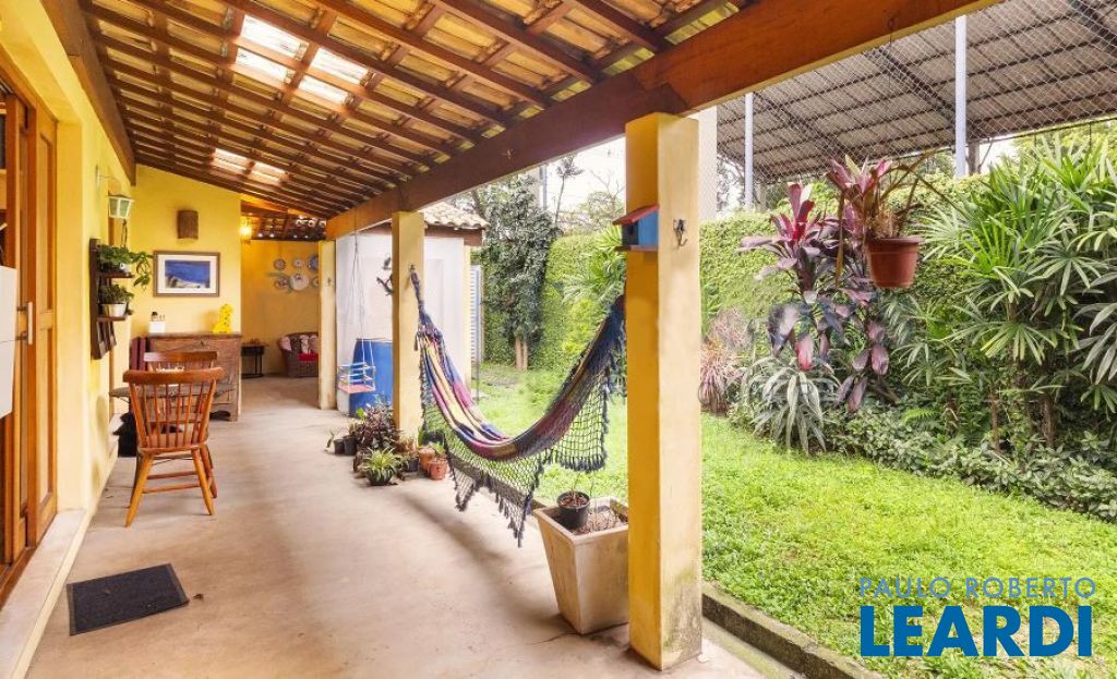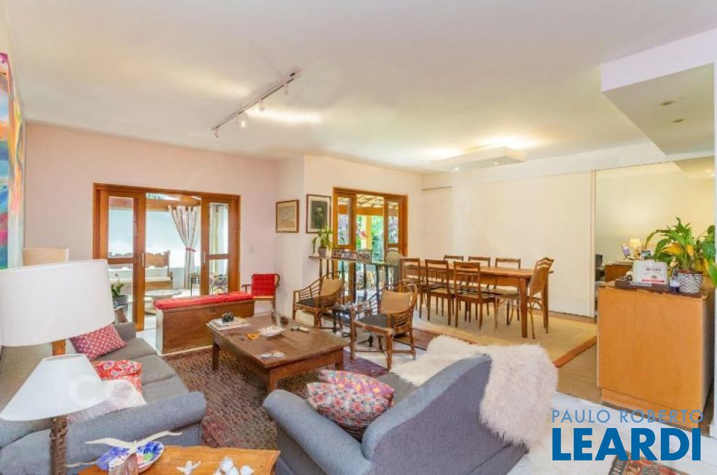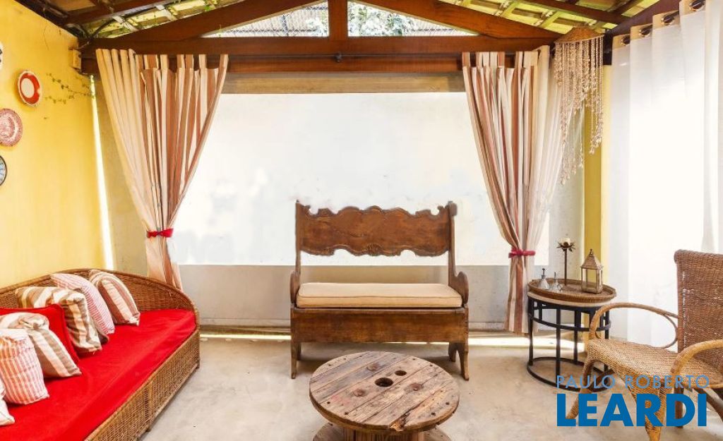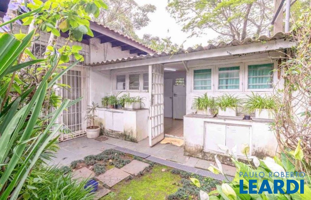Casa térrea, que numa reforma foi dividida ficando de um lado, um pequeno living, sala de jantar e uma suíte. Do outro lado, living com sala de jantar, claridade, natural, escritório separado através de uma porta de correr. Todos os ambientes tem acesso a um delicioso terraço e jardim. Possui 1 suíte com close, e mais 2 suítes com acesso através do jardim, uma vaga de garagem.